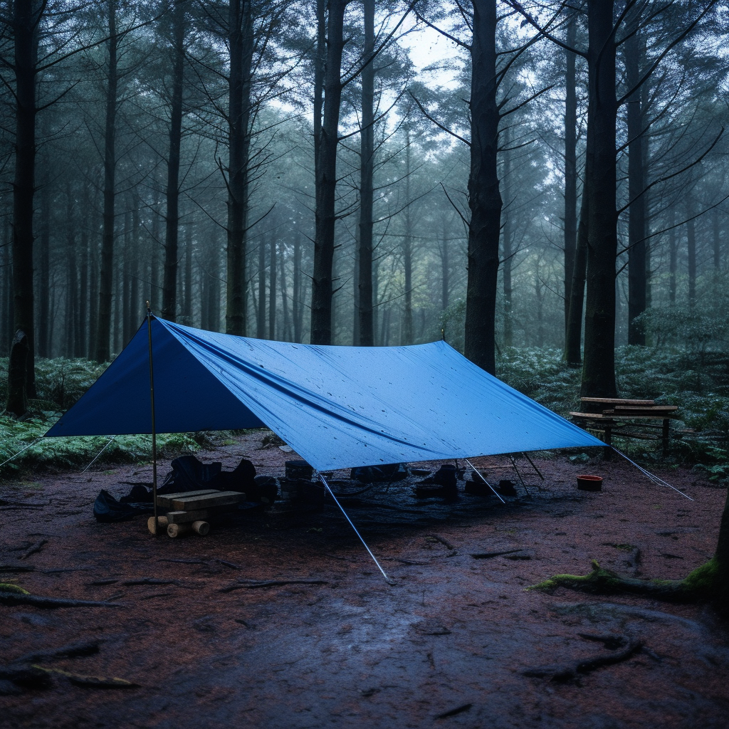 다양한 블루 시트로 짐 보관, 비막이, 차양막, 간이 타프(햇살이나 비를 막기 위해 이용하는 큰 천) 대용 등 다양한 상황에서 활용된다.접으면 컴팩트해지고 장소를 차지하지 않기 때문에 짐 틈 등에 넣어 두자.