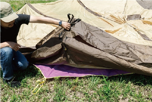 초보자들은 땅에 텐트를 친다고 생각하기 쉽지만, 그라운드 시트를 까는 것은 경험자 사이에서는 상식. 그 역할은 비의 침입이나 아침 이슬의 습기 방지가 하나.더욱이 진흙 얼룩을 제거할 때 텐트 뒤쪽과 그라운드 시트에서는 청소의 강도가 달라집니다.철수할때 편리한것도 한몫합니다.