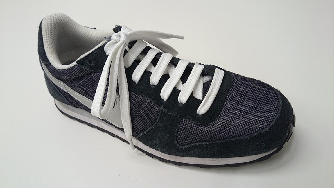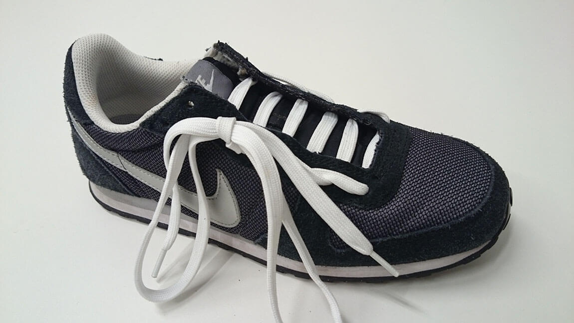 A stylish way of tying a knot on the side.The impression of sneakers changes completely.
